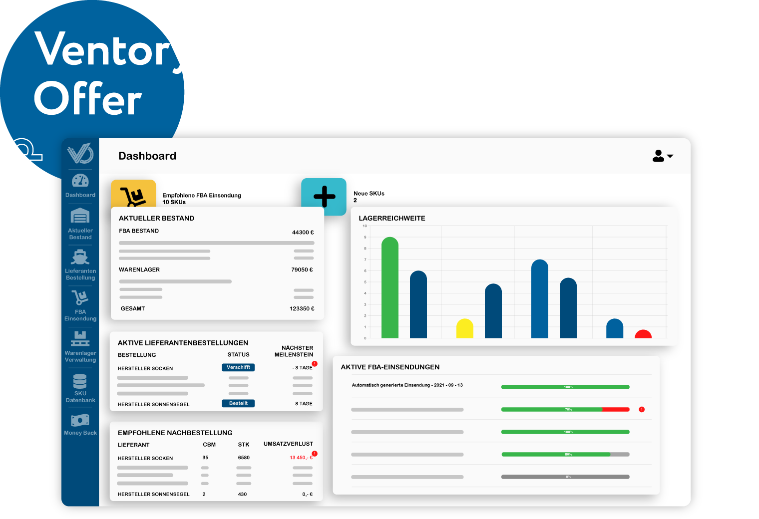 VentoryOne macht die Erstellung von FBA-Einsendungen deutlich leichter. Auf Basis deiner Verkaufsdaten werden optimale Lieferpläne generiert – inklusive Labels und Versanddokumenten. Mit wenigen Klicks ist alles vorbereitet. Deine Artikel werden korrekt erfasst und effizient an Amazon geliefert – ohne manuelle Fehler oder unnötigen Zeitaufwand.
